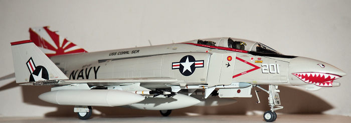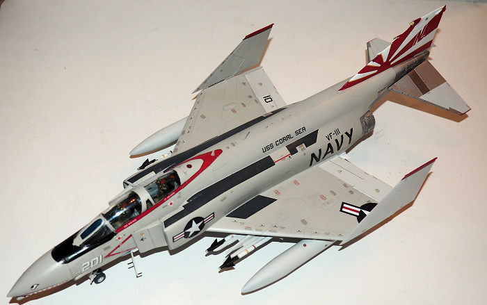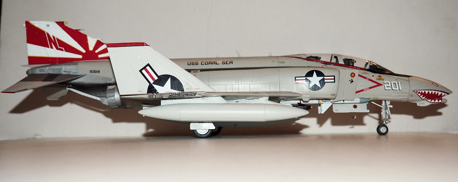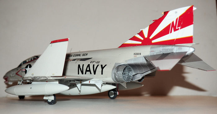 This build is the Sundowners Phantom from VF-111 aboard the USS Coral Sea. It was flown by Lt Gary Weigand and Lt (jg) Bill Freckleton, scoring a Mig-17 kill on March 6th 1972, using an AIM-9D missile. This was the first and only kill for VF-111 using the Phantom.