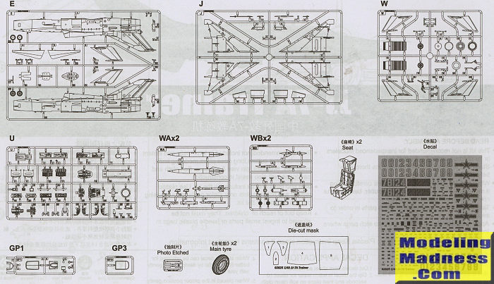 The instruction sheet is typical landscape format that is somewhat standard for Trumpeter kits. Markings options are all a light grey with nose numbers in either red or yellow. A variety of additional numbers are provided if you wish something different from the two standard ones provided. Lots of stencils are also provided. The sheet is nicely printed and should be trouble free.